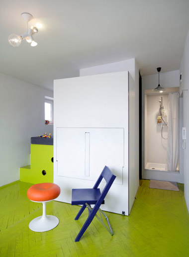 生活在一個窄小的空間里,要遠離沮喪心情,最好的方式就是將它打點的精彩有趣。波蘭建筑師 Jakub Szczesny在設計一處位于波蘭城區的21.5平米空間時就做到了這一點。