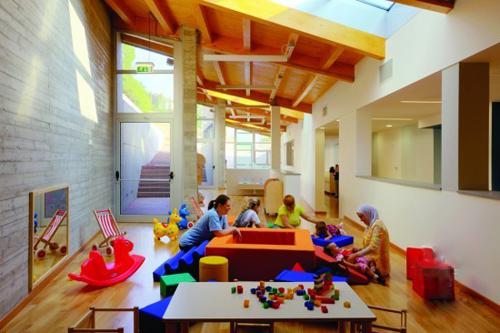 ccd studio設(shè)計(jì)的位于意大利維尼奧拉的Barbapapà幼兒園,是一項(xiàng)舉辦的設(shè)計(jì)競賽。該幼兒園位于城市開發(fā)區(qū)的邊緣地帶的山坡之上,離城市歷史中心并不太遠(yuǎn),它可以容納60個兒童,由4間教室組成。工程的目標(biāo)是達(dá)到可持續(xù)性的要求,這點(diǎn)從建筑的各個方面都可以體現(xiàn)出來,并且建筑本身也將這種可持續(xù)性的價值傳遞給了孩子們。