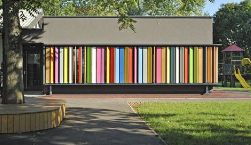 位于斯洛文尼亞的Kekec幼兒園,和世界上所有的幼兒園一樣十分“好色”,但如果只是這樣的話它還不值得我們關(guān)注,這間幼兒園的與眾不同之處在于它有著變色龍一樣的本事,可以瞬間“脫”去色彩繽紛的外衣,變身成一棟平凡無(wú)奇的小木屋。看來(lái)即使是平凡的木板,也終有艷麗轉(zhuǎn)身的一天。