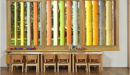 由于周?chē)鐓^(qū)兒童數(shù)量的不斷增加,Kekec幼兒園決定擴(kuò)建一間游戲室,由JureKotnik建筑公司進(jìn)行設(shè)計(jì)。考慮到這是一個(gè)為兒童服務(wù)的建筑,因此最重要的設(shè)計(jì)元素就是色彩,除此之外,設(shè)計(jì)師還希望新建筑的樣式更加靈活,融入一些玩具的特點(diǎn),讓孩子們能夠與之互動(dòng),從而增添一些娛樂(lè)性。而實(shí)現(xiàn)以上幾點(diǎn)只需要一個(gè)機(jī)關(guān)——像百葉窗一樣會(huì)“轉(zhuǎn)”的墻壁。