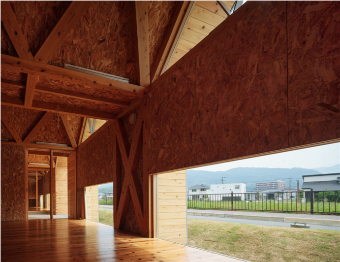 屋頂結(jié)構(gòu)采用折疊板設(shè)計(jì),無(wú)柱空間是通過(guò)運(yùn)用木桁架梁屋頂結(jié)構(gòu)實(shí)現(xiàn)的,形狀像一塊折疊板。所有支撐屋頂結(jié)構(gòu)的承重墻都被布置在建筑外圍?,F(xiàn)在這座建筑分成了兩個(gè)保育室、衛(wèi)生間等,但將來(lái)也可以轉(zhuǎn)換為一個(gè)大房間。