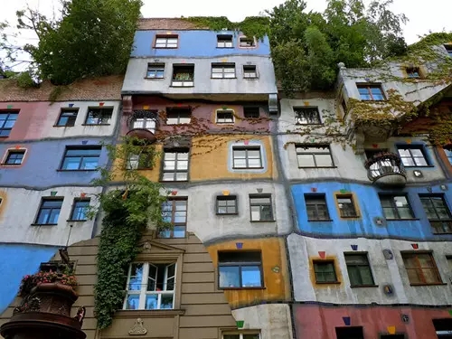 由藝術家改行為建筑師的佛登斯列·漢德瓦薩在好友的幫助下設計建造了百水公寓。百水公寓建于1983至1985年間,包含了一棟一層樓和一棟兩層樓的公寓。百水公寓包含了很多自然元素,樹木會在房間內生長,樹木的枝干在船外延伸。不過這樣設計,經過歲月的沉淀,想必會被植被慢慢吞噬。
