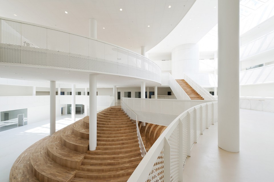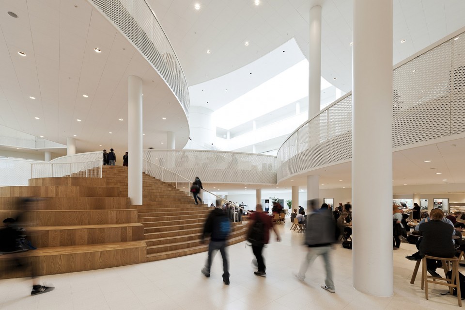 位于丹麥Odense城市中心的成人教育中心現已落成。這座位于中心車站附近的HF & VUC Fyn綜合體的建成,標志著連接內城和海港的新城市公園項目離建成又邁出了重要一步。建筑師將從粗野環境中提取的工業元素融入到建筑之中,與其內部開放兼容的空間組織相結合,將海港與城市生活真正連接到一起。建筑樸素的外觀與內部變幻多樣的圓形元素形成了強烈的對比,為1300位學生創造了多樣化的學習環境 – 一所使用方式靈活多樣,同時也為個人學習提供充足空間的綜合學校建筑。
