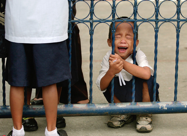 先來看看各國兒童們都是什么樣的吧,有人歡呼雀躍有人悶悶不樂,還有人顯然是沒睡夠哈欠連天,不過最搶鏡的,還是哇哇大哭各種拒絕的熊孩子,哭天搶地一臉的生無可戀,簡直可以算的上人間最痛苦的事兒了。菲律賓馬尼拉,阿基諾小學開學第一天,一個小男孩蹲在門口大哭。