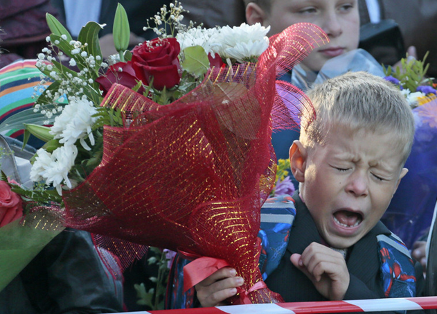 俄羅斯莫斯科,開學典禮上的一年級新生。